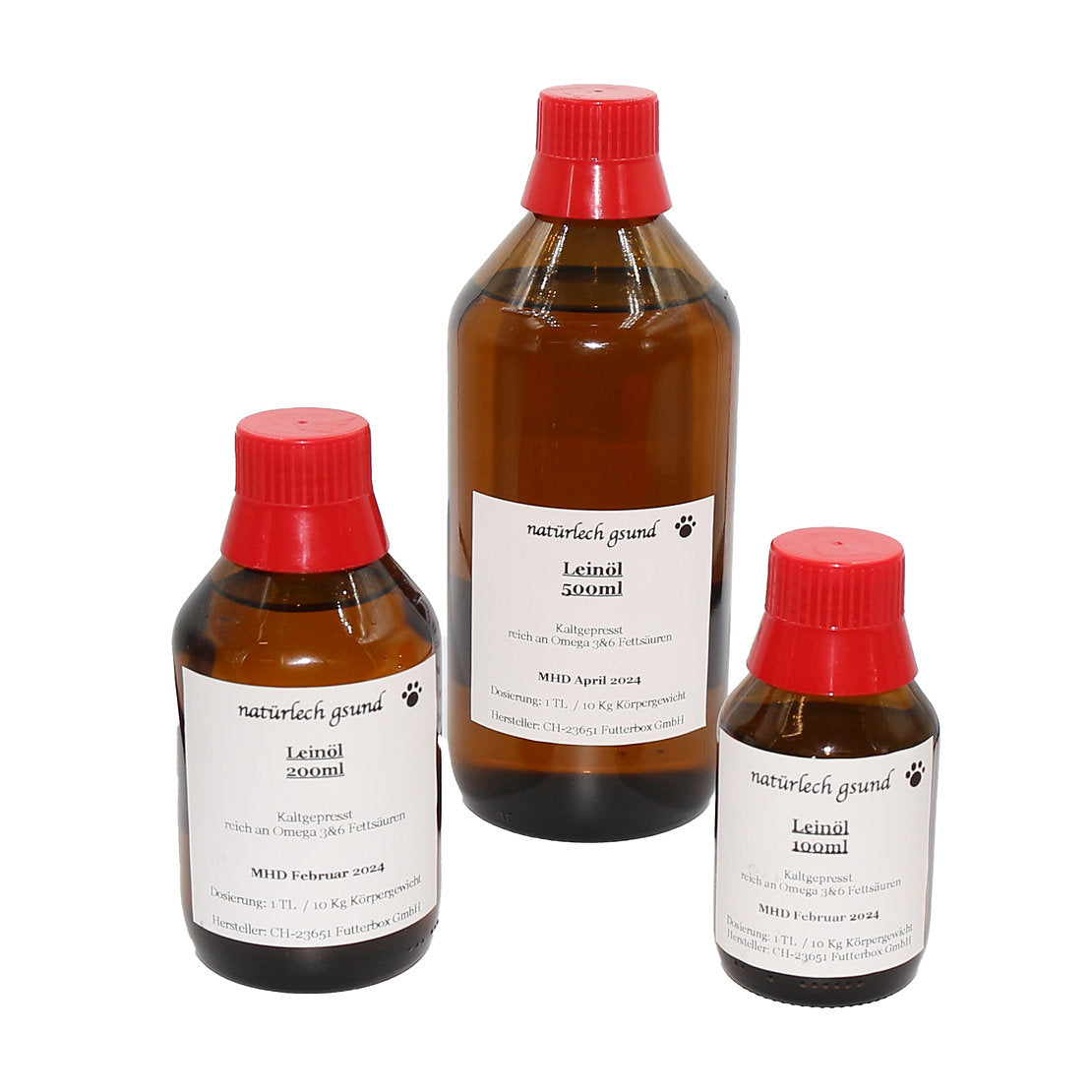 Kaltgepresstes Leinsamenöl ist reich an ungesättigten OMEGA 3 & 6 Fettsäuren, ideal für den Stoffwechsel und positiv für Haut, Haar, Muskulatur, Fell und Darm.